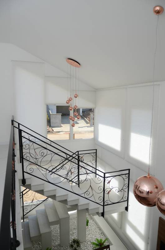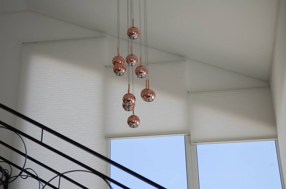 Com a modelos de cortinas duettes conseguimos alcançar grandes vãos de vidro em uma única peça e fazer diferentes formatos como janelas,redondas ,trapézios, em ângulos como no projeto em questão.